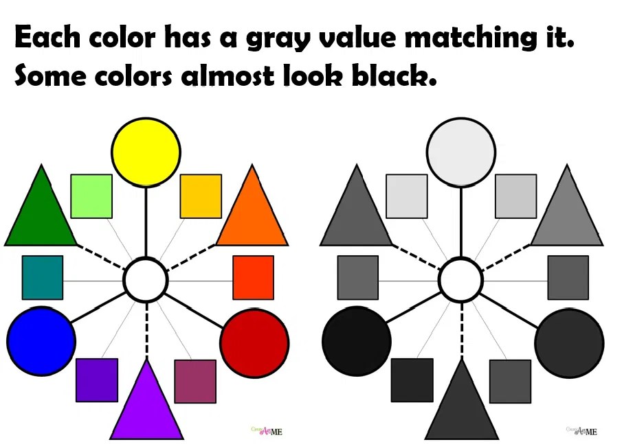 - Each color has a gray value matching it. Some colors almost look black.